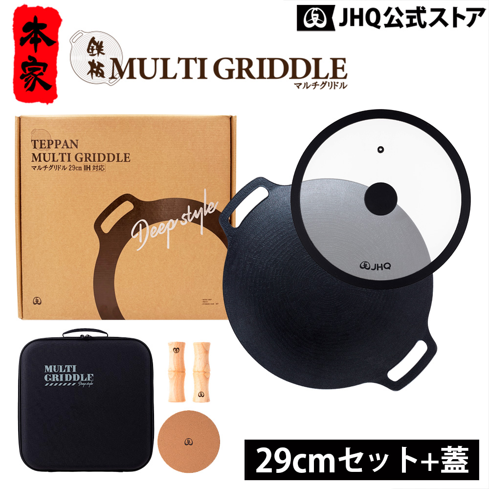 JHQ マルチグリドル 鉄板マルチグリドル 29cm 深型 5点セット 正規品 蓋付き 蓋セット キャンプ用品 BBQ アウトドア バーベキュー シーズニング不要 IH対応