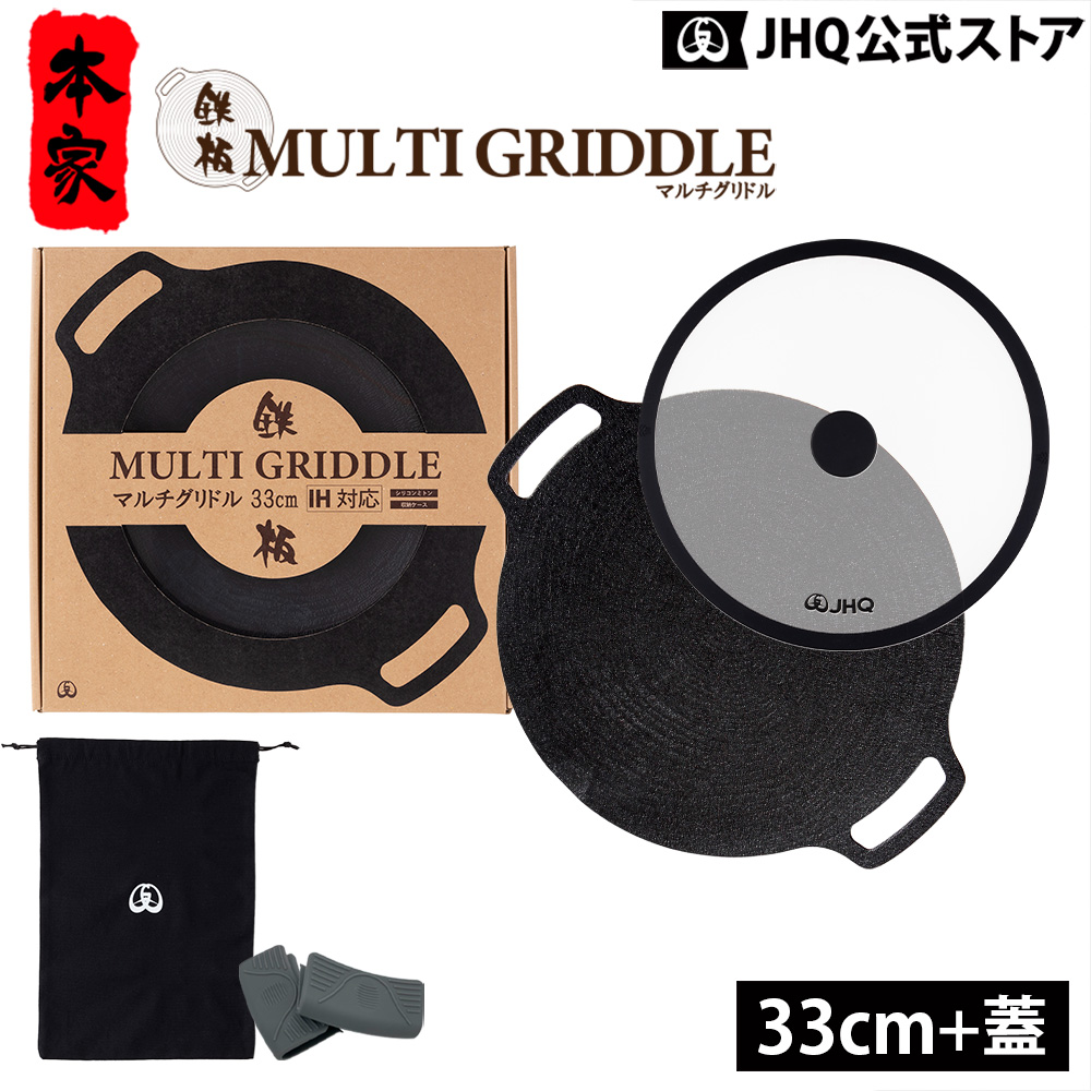 JHQ マルチグリドル 鉄板マルチグリドル 33cm 正規品 蓋付き 蓋セット マルチグリドルパン キャンプ用品 アウトドア BBQ バーベキュー シーズニング不要 IH対応
