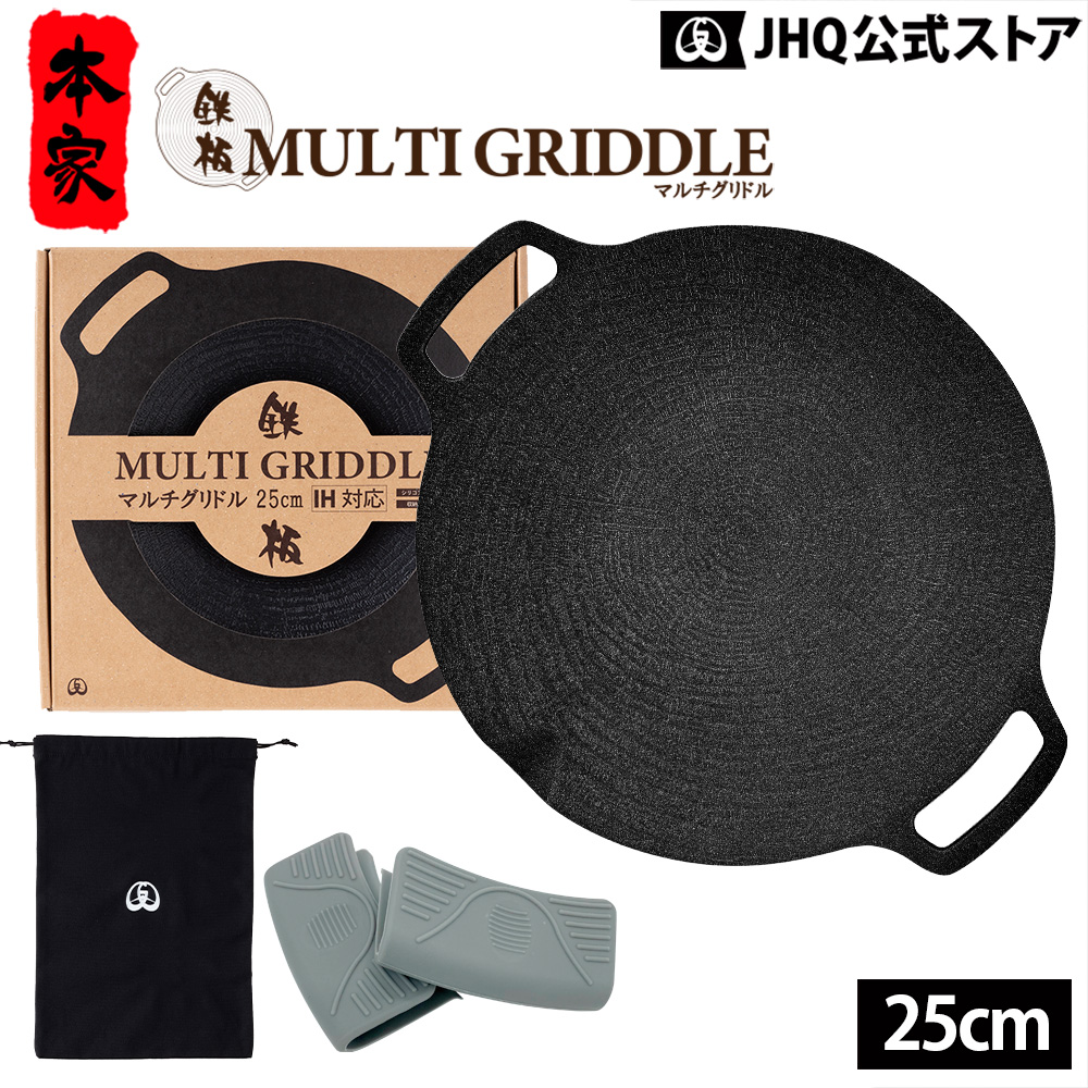 JHQ マルチグリドル 25cm 正規品 鉄板マルチグリドル キャンプ用品 マルチグリドルパン アウトドア BBQ バーベキュー シーズニング不要 IH対応 保証付