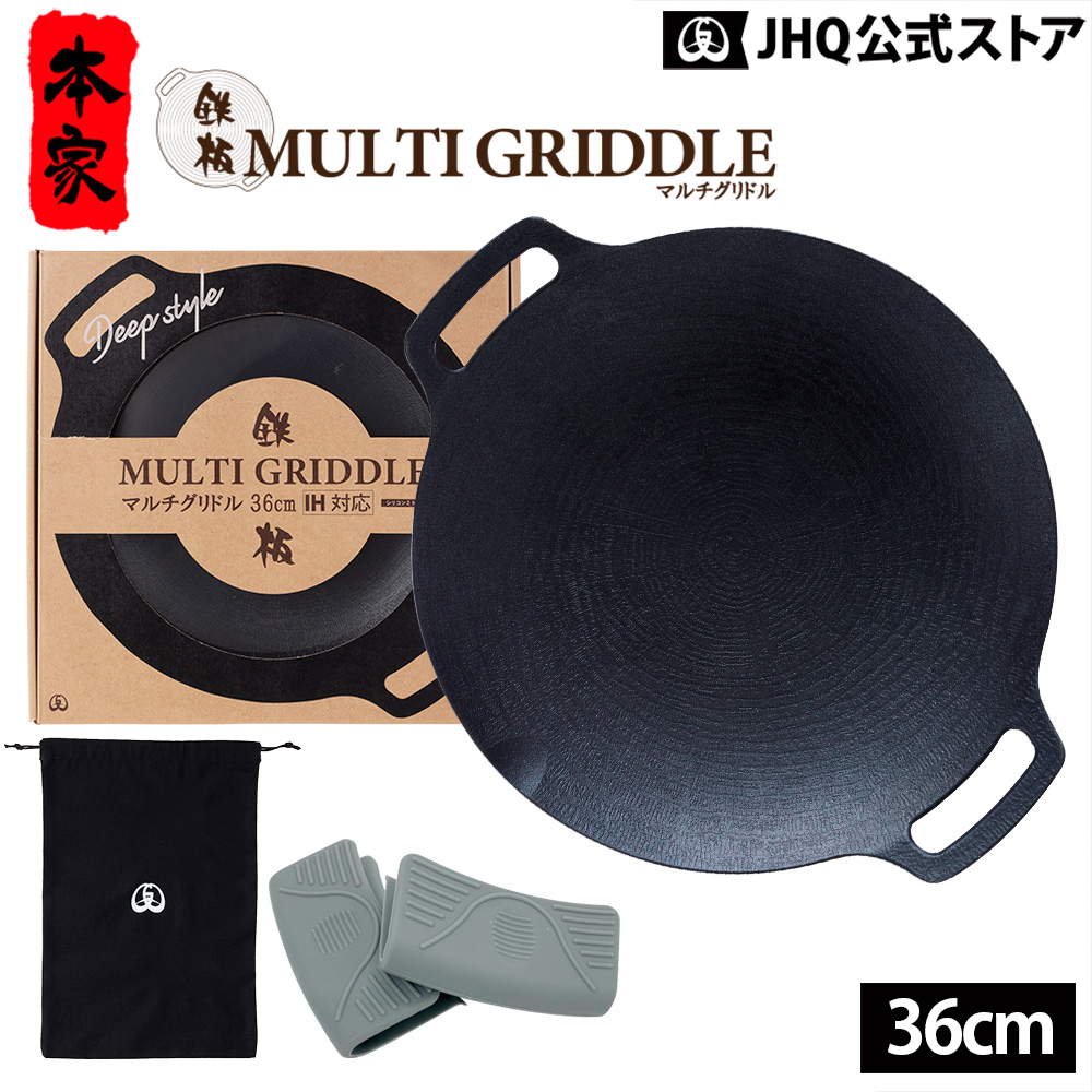 JHQ マルチグリドル 36cm 深型 正規品 鉄板マルチグリドル 単品 キャンプ用品 グリドルパン アウトドア シリコンミトン付き BBQ バーベキュー IH対応 保証付