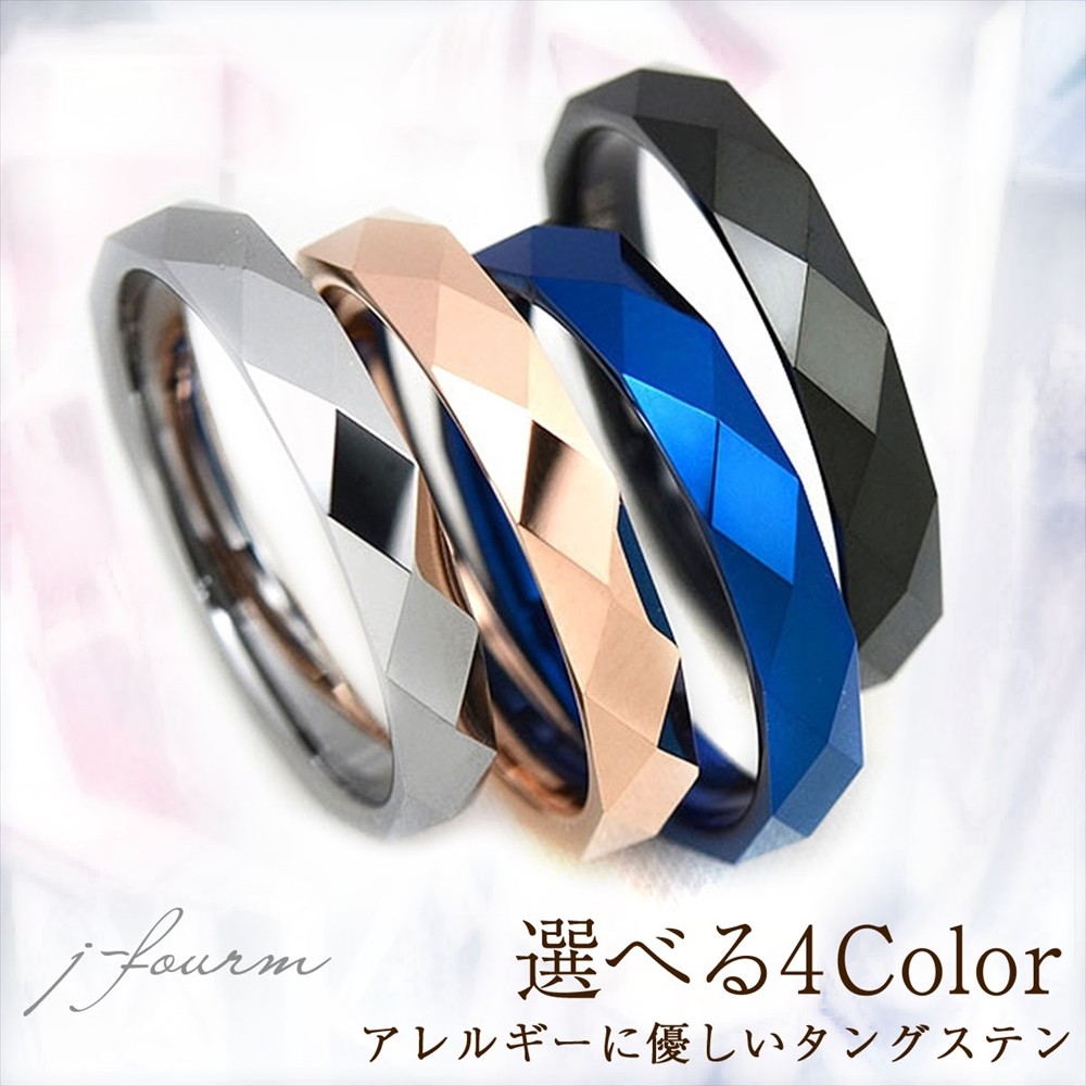 輪 刻印無料 レディース シンプル リング タングステン メンズ 送料無料 ダイヤカット 3mm 1個 シルバー ブラック ピンクゴールド ブルー