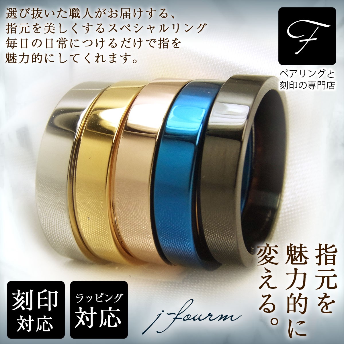 指輪 刻印 レディース シンプル リング メンズ ペア ステンレス 平打ち 4mm 金属アレルギーに優しい 1個 ピンクゴールド イエロー シルバー ブラック