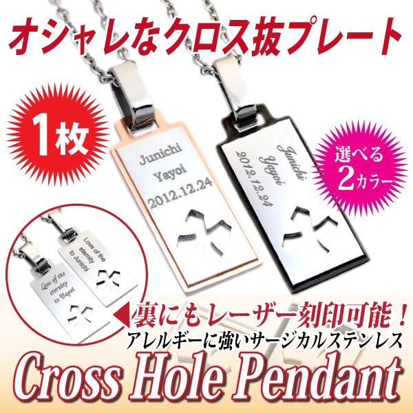アレルギーに強いサージカルステンレスペンダントにオシャレなクロス抜きプレートが登場!もちろん両面にレーザー刻印可能です。文字数よりデザインが大事って貴方にも満足いただけると思いますよ。