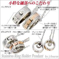 | 詳細 | ペアリングをペアネックレスに変身させるリングホルダー サージカルステンレス製のリング型ペンダントトップです。 開くようになっているので、中にリングを挟んで即席グラスホルダーネックレスに変身しちゃいます。 仕事や家事でリングを外さなければならない時、 リングのサイズが合わなくなった時、 これを使って大切なリングをいつでも身に付けていてくださいね。 もちろん、単体でつけても立派なペンダントトップになります。 弊社取り扱いの幅6mmまでのリングなら通ります。 写真のチェーンが付属でサービス。 必要な方はそれぞれの長さをお選びください ※チェーンを通す穴が大きくありませんので、あまり太いチェーン、丸カンのチェーンは通りません。 |