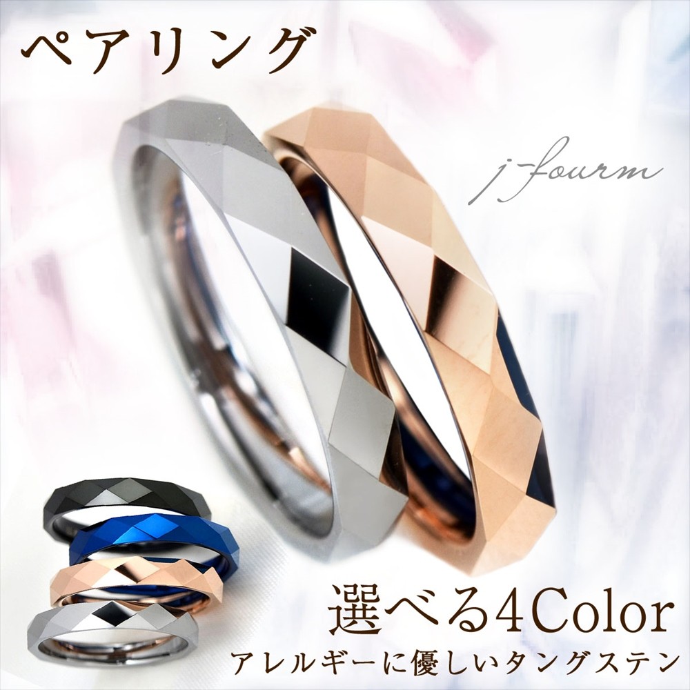 ペアリング 刻印無料 シンプル タングステン ダイヤカット 3mm リング 2個 シルバー ピンクゴールド ブルー ブラック ペアアクセサリー タングステンリング 指輪