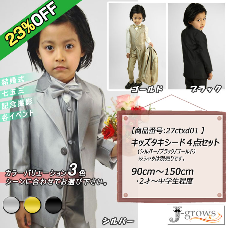 【23%OFF】子供タキシード キッズ フォーマル スーツ 子供服 シルバー ブラック ゴールド 3色 結婚式 ピアノ 発表会 卒業式 卒園式 27ctxd01