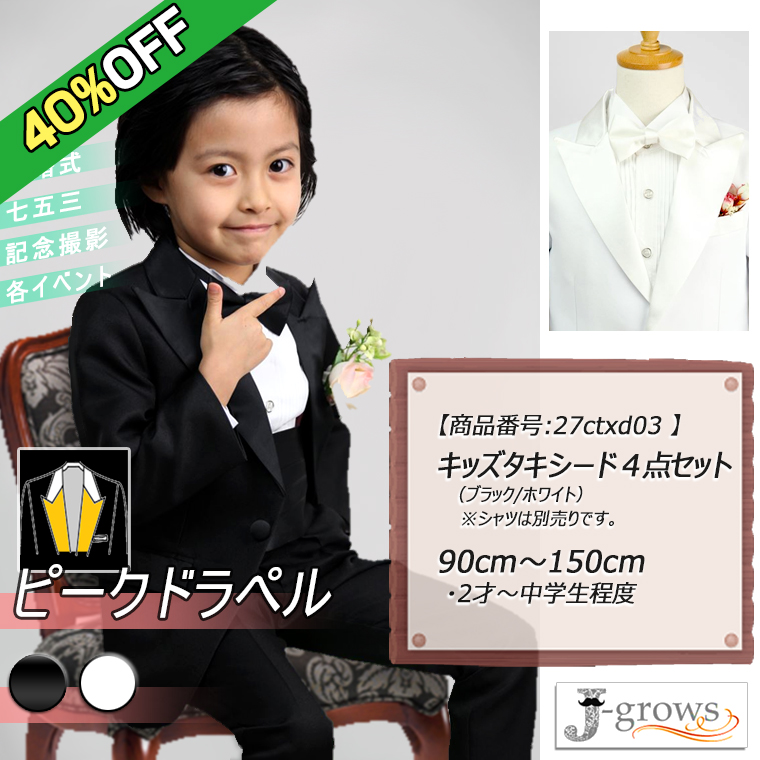 【40%OFF】子供タキシード キッズ フォーマル スーツ ピークドラペル 白黒2色 結婚式 ピアノ 発表会 卒業式 卒園式 入園式 27ctxd03