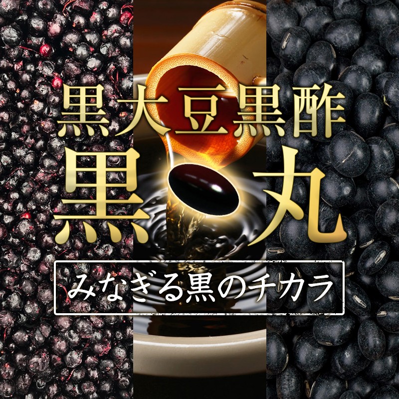 『黒大豆黒酢・黒丸』には、話題の黒酢や黒大豆をはじめ、7種類の微量ミネラル、アセロラビタミン、黒カシスの7種類の黒食材を1粒のカプセルに凝縮したサプリメントです!