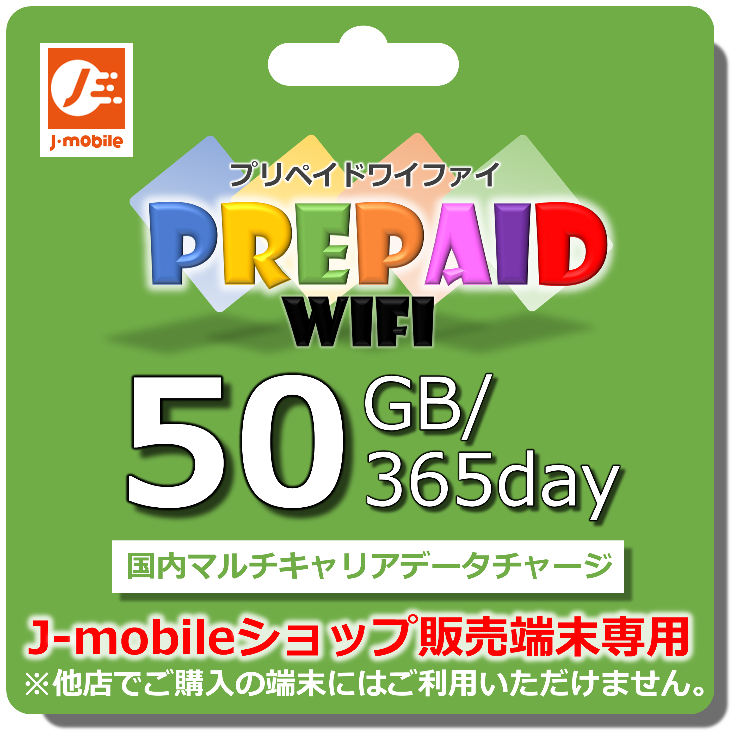 プリペイドWiFi チャージコース 50GB/365day 国内マルチキャリア回線 J-mobileサービス対応機種専用