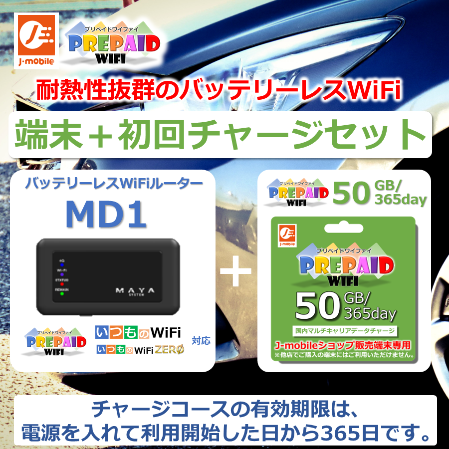 MD1 バッテリーレスWiFi本体 プリペイドWiFi 50GB/365day セット