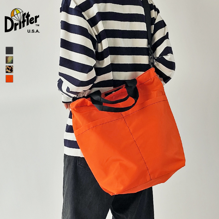 | Drifter (ドリフター) 2WAY トートバッグ EVERYDAY TOTE DFV4660 超軽量「毎日使いたい」バッグ! 前面側には見た目のアクセントにもなっている少し大き目な縦型のオーブンポケットが二カ所、背面側にもスナップボタン式の大振りなポケットを配置しています。何かと使うA4サイズも、300グラム以下の超軽量。週末、通勤、荷物多めさんにも重宝するデイリーバッグ。ショルダーにしても大きさを感じない身体に沿うラインがバランスよく収まります! |