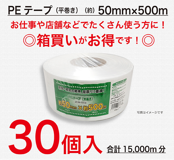 PEテープ 平巻き 50mm x 500m 30個 「まとめ買い」 「業務用」 荷造り紐 引越し ビニール紐 新聞 雑誌 ひも ビニールテープ JCM-003-30SET
