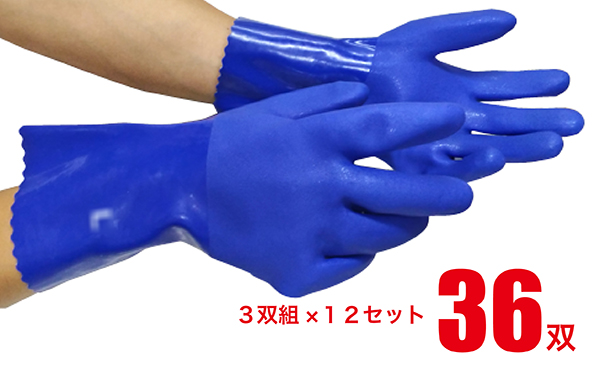 作業用手袋 耐油 ビニール 3双組×12セット計36双 「まとめ買い」 PVC 油仕事 水産 漁業 水仕事 抗菌防臭 スベリ止め加工 内布 シームレス JK-010-12SET