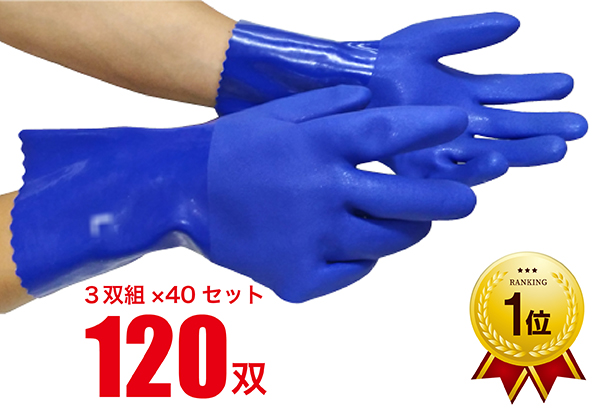 商品名:作業用手袋 耐油 ビニール 3双組×40セット計120双 「まとめ買い」 PVC 油仕事 水産 漁業 水仕事 抗菌防臭 スベリ止め加工 内布 シームレス JK-010-40SET