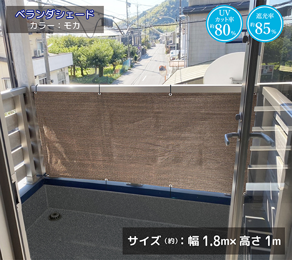 商品名:ベランダ 目隠し シェード 日よけ 約1.8m×1m (ハトメ8個)取付用バンド付 オーニング 紫外線 UV対策 省エネ JVS-118-8EYE