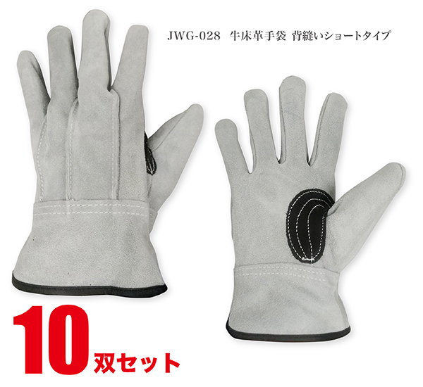 作業用手袋 革手袋 牛床革 ショート 内綿 10双セット まとめ買い 背縫い 上級革 土木 建築 鉄筋 工事 運搬 アウトドア レジャー JWG-028-10SET