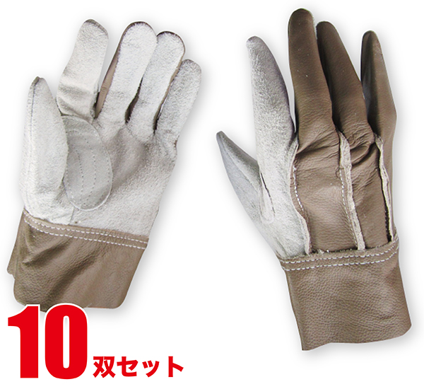 作業用手袋 革手袋 牛床革 切り替え コンビ 10双セット まとめ買い 作業 土木 建築 鉄筋 工事 運搬 アウトドア レジャー BBQ レザー グローブ JWG-033-10SET