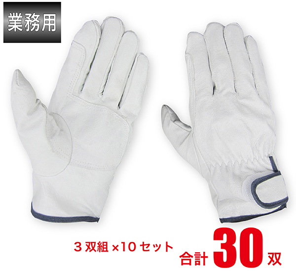 作業用手袋 革手袋 豚革 アテ付 マジック 3双組 ×10 計30双セット まとめ買い DIY 土木 建築 鉄筋工事 運搬 物流 JWG-104-10SET