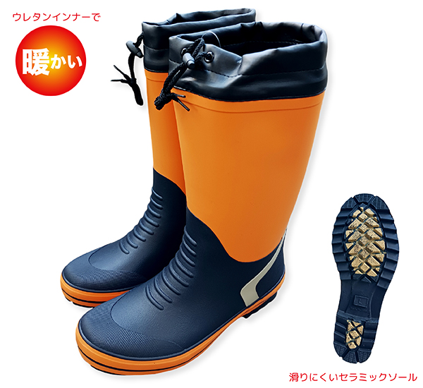 商品名:防寒 長靴 メンズ 作業用 滑りにくい セラミックソール 防水 胴太 カバー付 ウレタン裏 スノーブーツ レインブーツ 暖かい WB2301