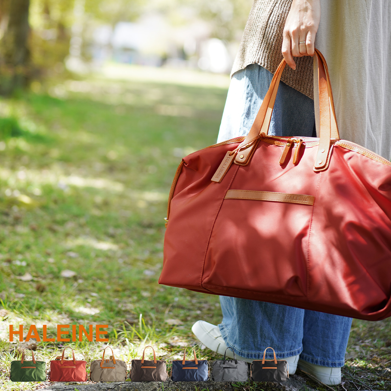 ボストンバッグ 旅行 レディース ブランド HALEINE ナイロン 栃木レザー たつのレザー 本革 大人 軽い 軽量 旅行バッグ (No.07000073)