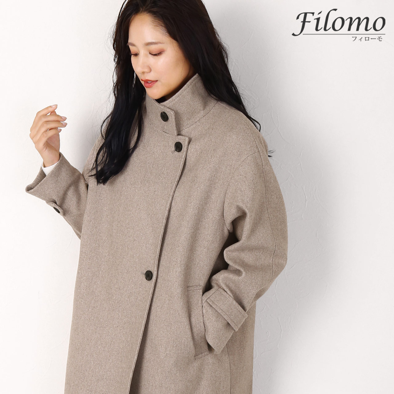 | 商品名:Filomo ウールタッチ スタンドカラー ロングコート レディース |