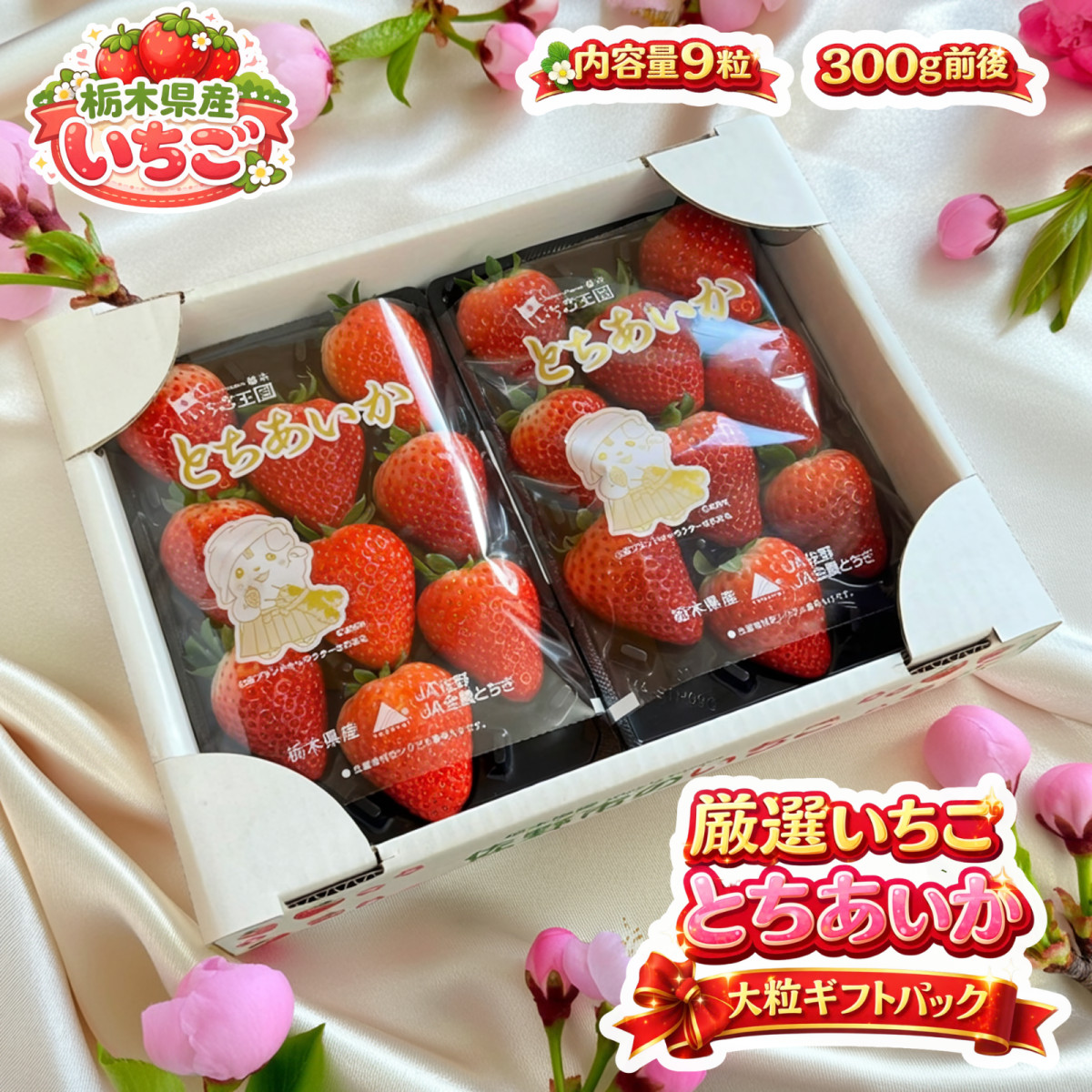 【新発売】 苺家みよし 厳選いちご とちあいか 大粒ギフトパック 1パック9粒×2 合計約600g 輸送対応トレー使用 栃木県産 冷蔵便 送料無料 JA佐野