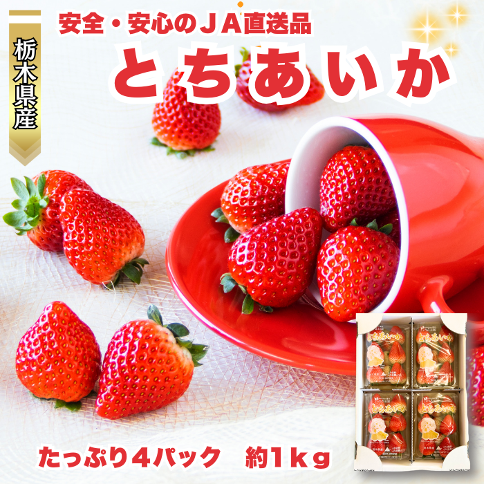 とちあいか 4パック 約270g×4 栃木県産 送料無料 イチゴ いちご 苺 冷蔵便 ギフト 家庭用 業務用 JA直送 爆買