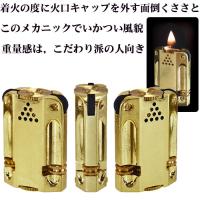 回転ヤスリが両サイドにあるので使用時に発火石がなくなっても反対側で着火できます。 火口キャップがネジ締め式なのでオイルの揮発スペースが少なく、長持ちします。 着火する度に火口キャップを外す面倒くささと、このいかつい風防、どっしりとした重量感が、こだわり派にはたまらない!
