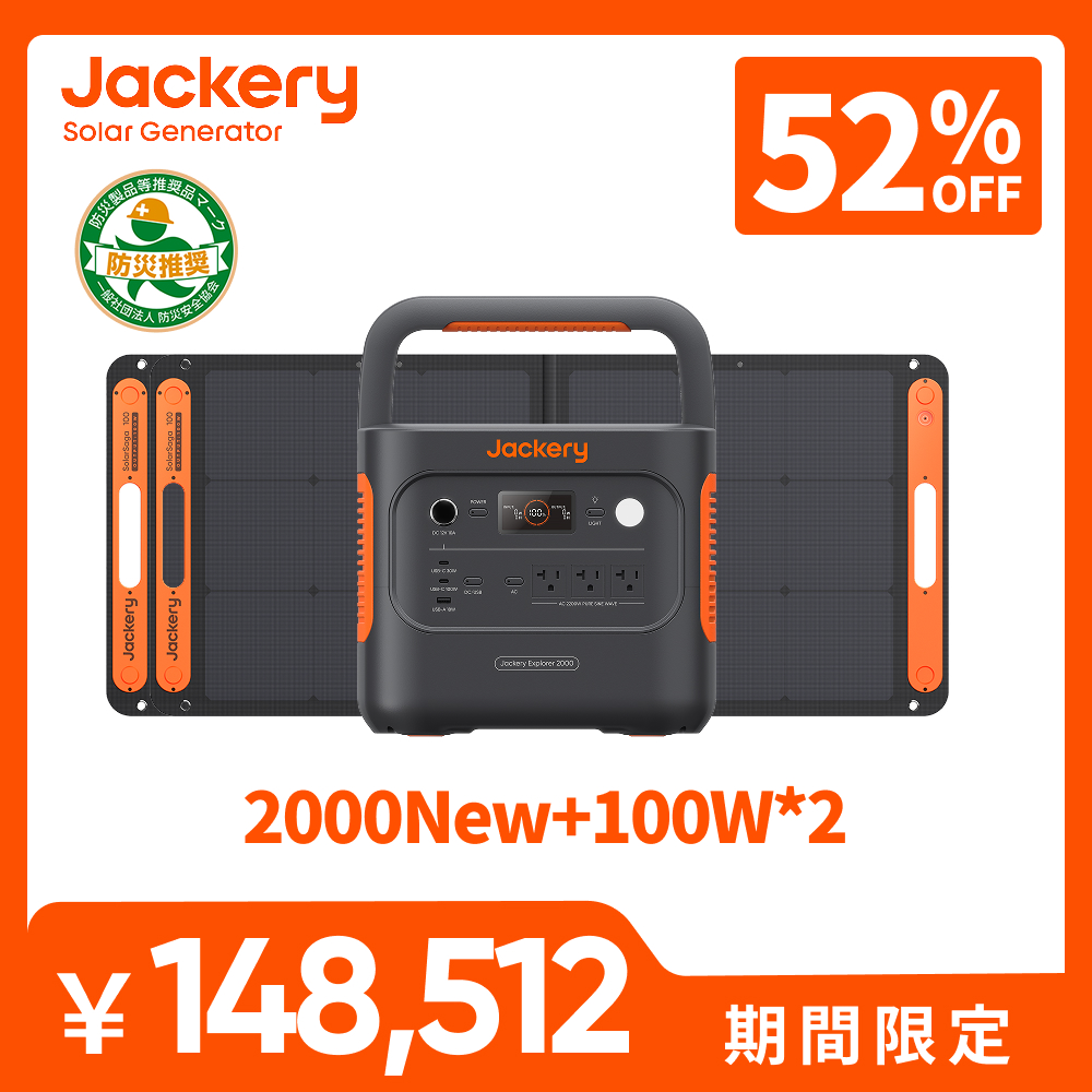 | 【2000Whクラスで最軽量、最小ボディ】 2000Whクラスの主流モデルよりもサイズが約40%小さく(33.5×26.4×29.2cm)、重量は約34%軽量化(17.9kg)。 *2024年9月時点 2000Wh容量段双方向インバーター搭載のリン酸鉄モデルにおいて。Jackery調べ。 【2042Whの大容量、定格2200W(瞬間最大4400W)の高出力】 2042Whの大容量、定格2200W(瞬間最大4400W)の高出力により「もっと自由に電力を使いたい」というキャンプ・車中泊、DIYなどの屋外作業に加えて、防災や家庭の節電対策にぴったり。 【大容量でも66分で0%から80%まで充電でき、102分(1.7H)で満充電になる】 家庭用ACコンセントで最速66分で0%から80%まで充電、102分(1.7H)で満充電。 ソーラーパネル充電の場合は最速6時間でフル充電(ソーラー入力 400Wの場合)。 選べる多様な充電方法: ACコンセント充電/ソーラー充電/シガーソケット充電/ハイブリッド充電(ACコンセント+ソーラー*、ACコンセント+シガーソケット) 【世界初、2000Whクラスのポータブル電源にCTB(セル・トゥ・ボディ)技術を採用】 最先端のCTB構造によりスペース利用率が69%に増加。耐久性も向上。コンパクトながら妥協なきパフォーマンスを実現しました。 【10 年間毎日使える長寿命、4000 回の充電サイクル】 毎日充電した場合でも最長10年間使える長寿命。4,000回の充電サイクル後もバッテリー残量は工場出荷時の70%を維持します。 【優れた耐久性と耐震性で防災にもキャンプにも】 IEC60068-3-3耐震試験に合格しており、震度7の地震でも本体の完全性を保ちます。ケースにはUL 94V-0定格難燃性材料を使用し、埋め込み型LEDライトも装備しています。 【さらなる安全性を実現した「ChargeShieldテクノロジー2.0」】 62種類の保護機能を搭載した、最先端の高速充電技術 「ChargeShieldテクノロジー2.0」 は、独自の段階的可変速充電アルゴリズムを採用することで、さらなる安全性能の向上を実現しました。 【UPS&パススルーで普段から停電に備える】 UL1778 認証済みのUPS機能搭載、切替速度20ミリ秒(0.020秒)以下、常時接続可能のパススルー機能と併用することで非常時に電源供給元をポータブル電源に切り替えることで継続して電気が使えます。 【バッテリー節約モードで、電池寿命を1.5倍に】 アプリで「バッテリー節約モード」を設定すると、充電を85%に制限し、バッテリー残量が80%を下回った場合のみ充電することで、バッテリー寿命を1.5倍に延ばすことができます。さらに、自然放電を抑える「超ロングスタンバイモード」を搭載しており、30%の電池残量で一年間保管しても、20%の電力を維持できます。いざという時も安心です。 【特許取得済みの環境にやさしいパッケージ】 革新的な環境にやさしいパッケージデザインを採用、特許取得済みの穴あき紙ハンドル、プラスチック廃棄物がなく、丈夫で環境に優しい。 【5年間の長期保証】 3 年間の基本保証に加えて、製品登録で 2 年の延長保証を提供。最大5年間の長期保証だから、購入後も安心です。 【無償回収・リサイクルサービス】 Jackeryでは、ご使用済みのポータブル電源の回収を承っております。 |