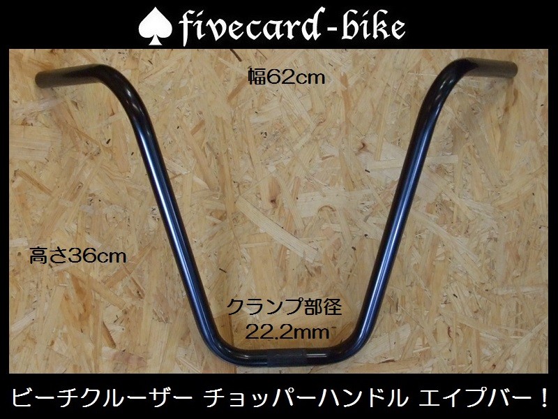 チョッパーエイプバー!!幅62cm 高さ36cm 中央クランプ部22.2mm fivecard-bike ファイブカード限定 湘南の自転車ビーチクルーザーカスタム専門店!
