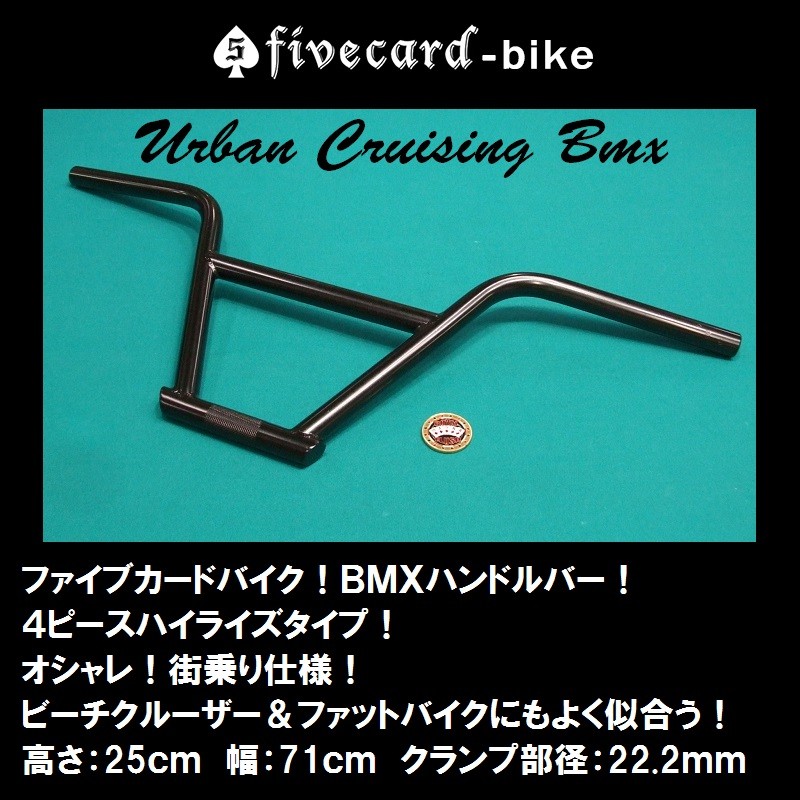 ビーチクルーザー ハイライズBMX ハンドルバー!!高めの25cm 幅71cm スペーサー別売 fivecard-bike ファイブカード限定 湘南の自転車カスタム専門店!
