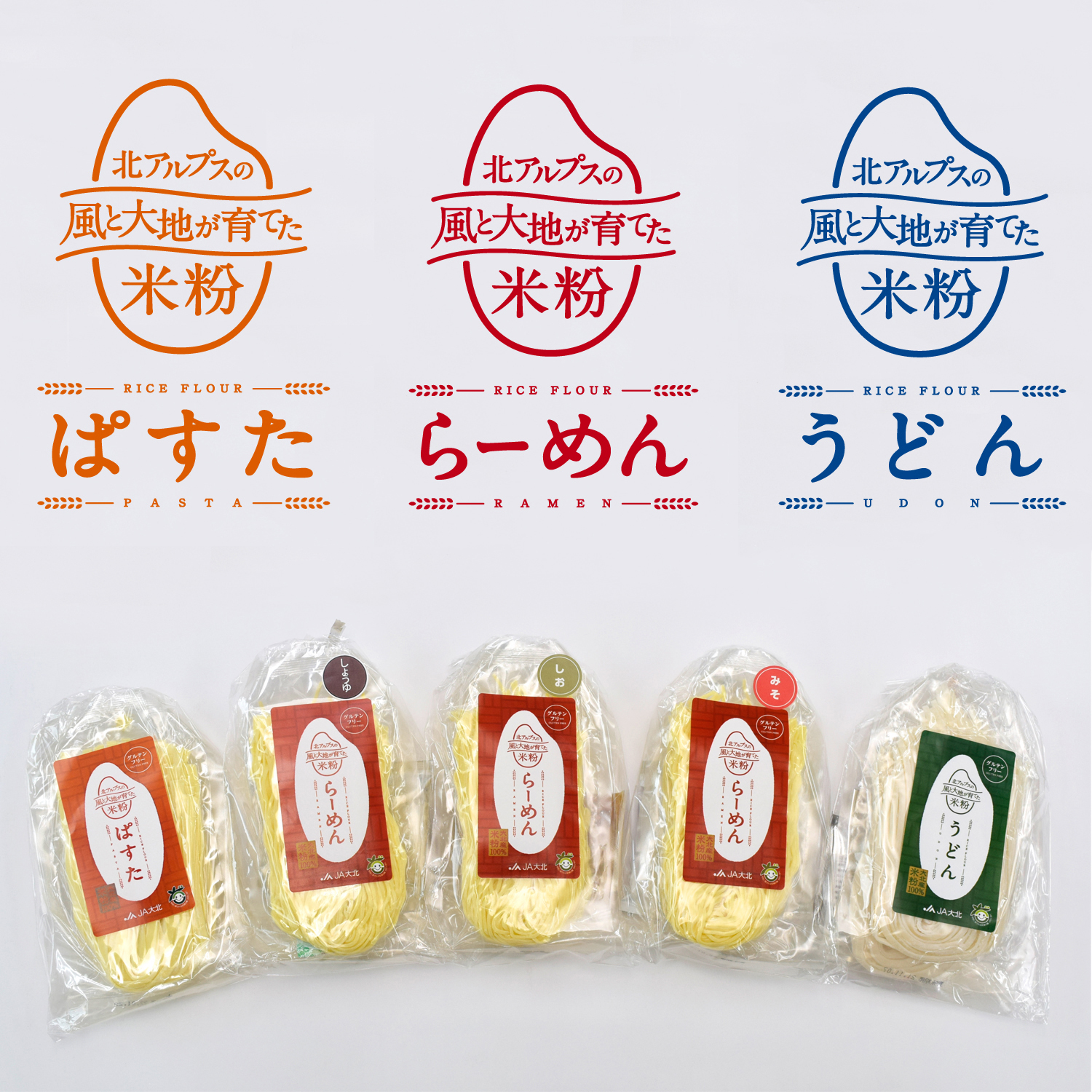 大町市および北安曇郡産の「風さやか」を使用した、グルテンフリーの米粉麺セットです。