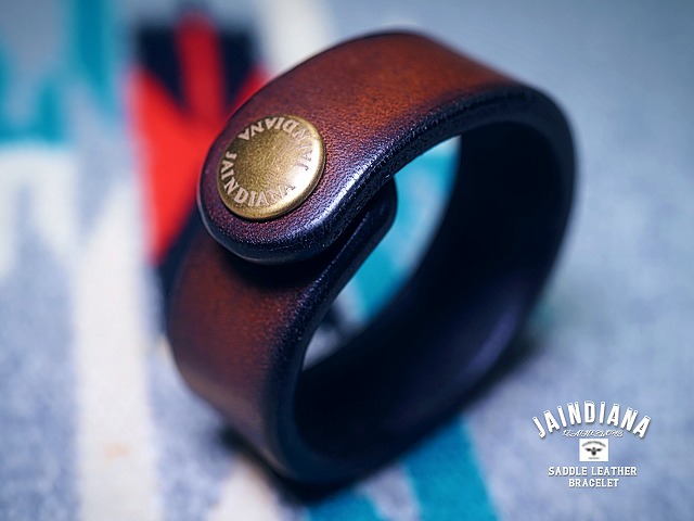 手染めで丁寧にビンテージ感ある深みのあるダークブラウンに仕上げ、新たな存在性へと昇華したサドルレザーブレスレット。