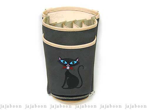 黒猫 シザー ケース グレー 5丁 差し ( 革 ベルト 付 ) 本革 ( レザー ) 製 JAJABOON ジャジャブーン