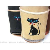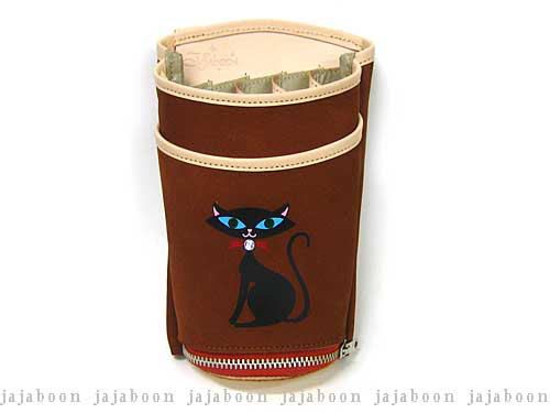 黒猫 シザー ケース 茶色 ( ブラウン ) 5丁 差し ( 革 ベルト 付 ) 本革 ( レザー ) 製 JAJABOON ジャジャブーン