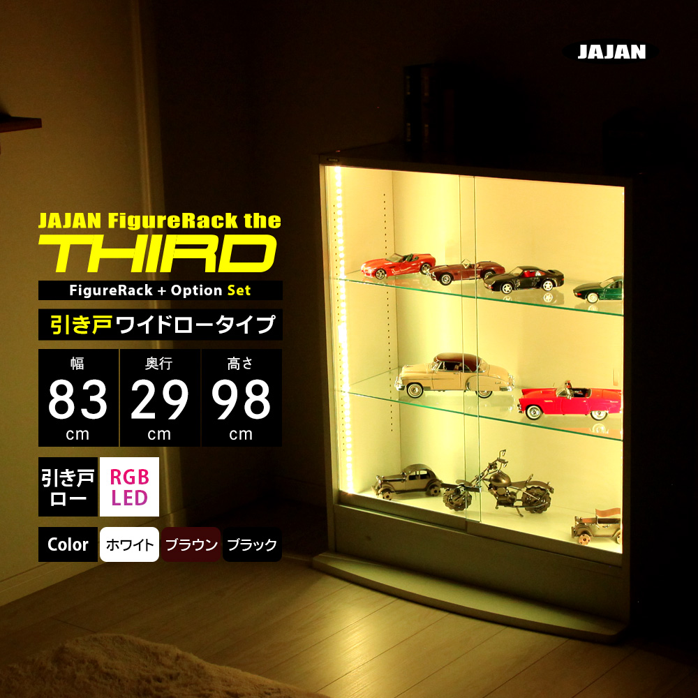 JAJAN フィギュアラック ザ サード セット 引戸本体ロータイプ 幅83cm 奥行29cm + RGB LED