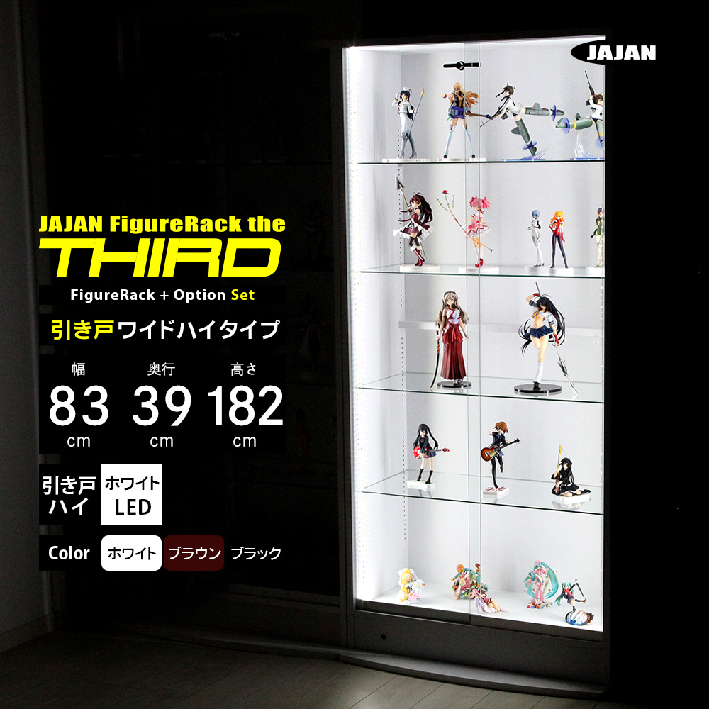 ホワイトLEDセット ( ホワイト LED + 本体ハイタイプ 引き戸 幅83cm 奥行39cm 高さ182cm ) JAJAN フィギュアラック ザ サード ワイド コレクションラック