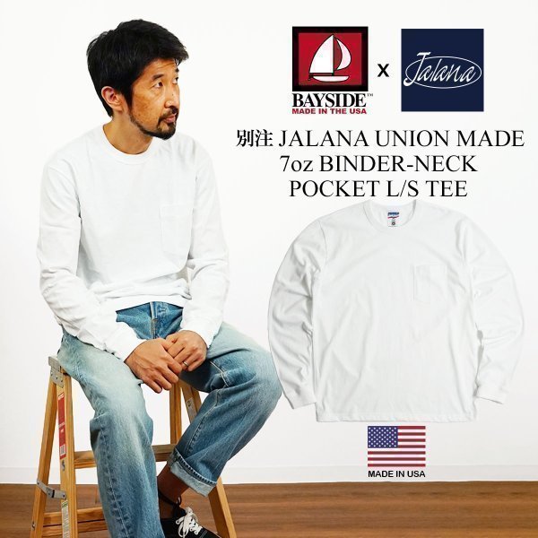 ベイサイド BAYSIDE Jalana別注 7オンス 長袖 バインダーネック ポケット Tシャツ ユニオンメイド