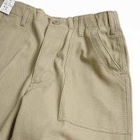 アールズアパレルの定番モデル「キャンプファティーグトラウザー」。フロントの大きなパッチポケットと、フラップ付きのバックポケットが特徴で、通常「ベイカーパンツ」と呼ばれるモデル。ルーツは米軍で作業用に使われていたアイテムですが、ベイカー(BAKER)の名の通り、パン屋さんが仕事着として使っていたという説もあります。素材はライトなコットンダックで、穿き込む程柔らかく、風合い豊かに変化。太すぎず細すぎずの絶妙なシルエットで、さりげないワーク感が漂い、穿き易く合わせ易い。さらに米国製でプライスもリーズナブル。これこそアメリカンワークの真骨頂!ヘビーローテ必至のデイリーユースパンツとなっています♪ これまでガンホーネームで展開していましたが、ライセンスの都合でスタンレーネームに変更されました。商品自体は全くおなじものになります。