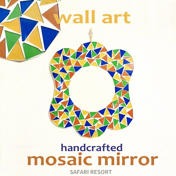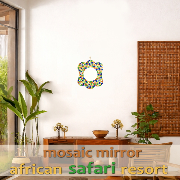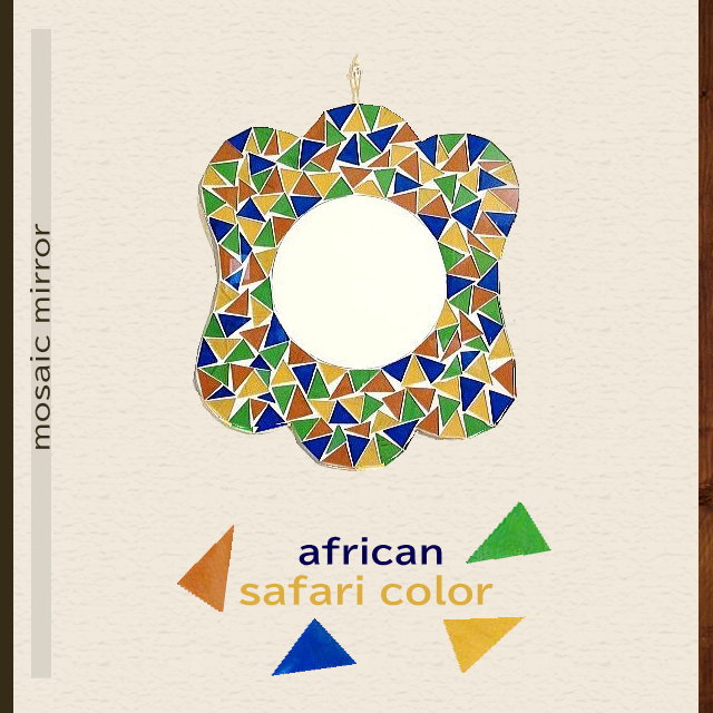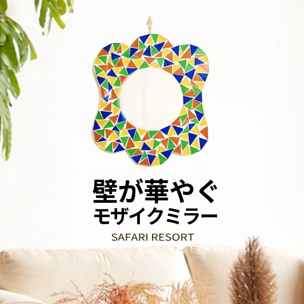 壁掛けミラー おしゃれ アート 鏡 オレンジ 黄色 青 緑 白 ミラー 壁掛け ウォールミラー サファリ アジアン バリ モザイクミラー アフリカン safari リゾート
