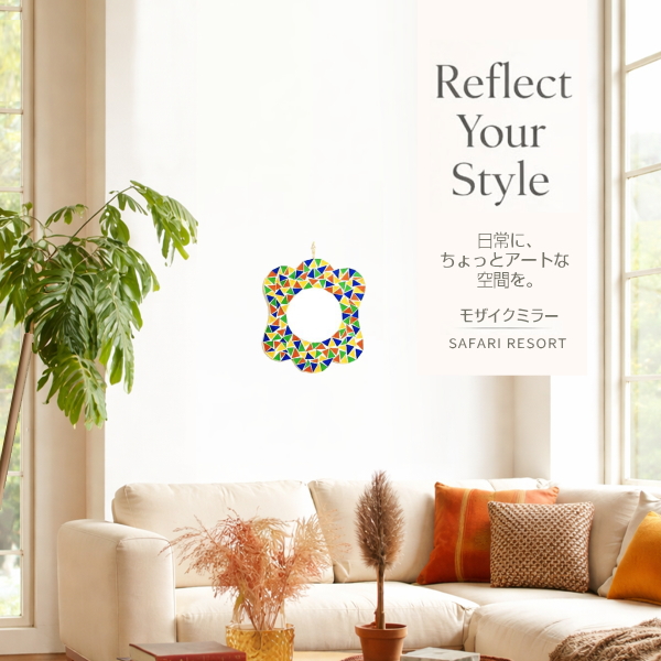 *サファリカラーな壁掛けリゾートモザイクミラー