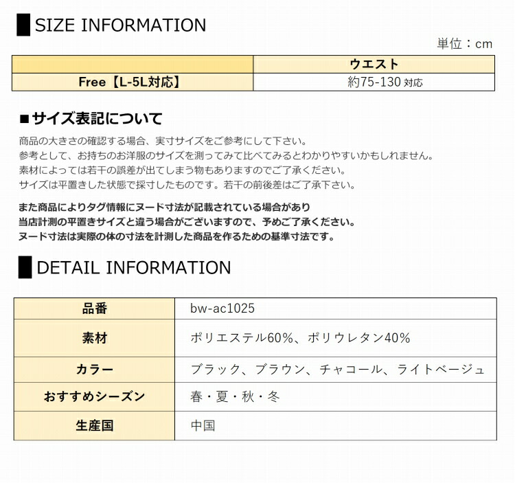 F【L-5L対応】:ウエスト約75〜130cm対応