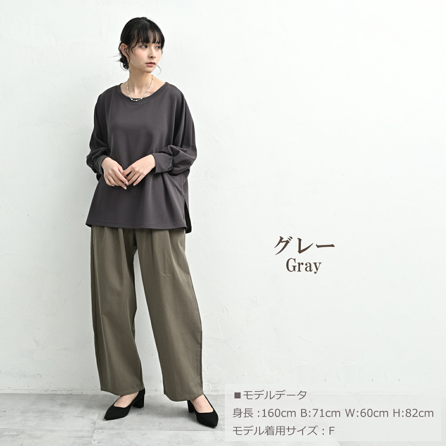 ・週末の旅行やランチに:ブラックやグレーで引き締めて、リラックスしたニットを。長時間の移動でもウエストの締め付けを感じにくく、大人の余裕を感じさせるカジュアルスタイルが完成します。
