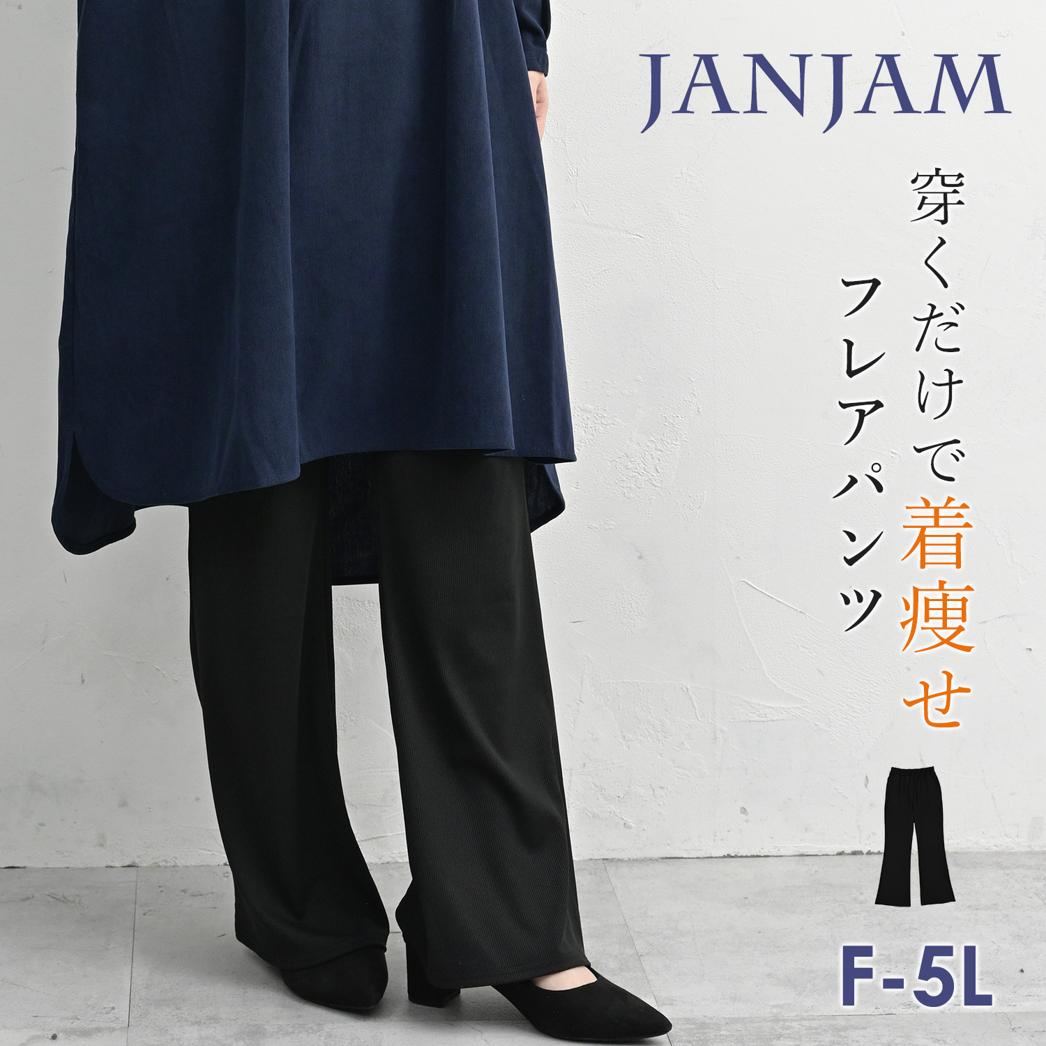 【メール便送料無料】穿くだけで着痩せして見えるきれいめフレアパンツ。