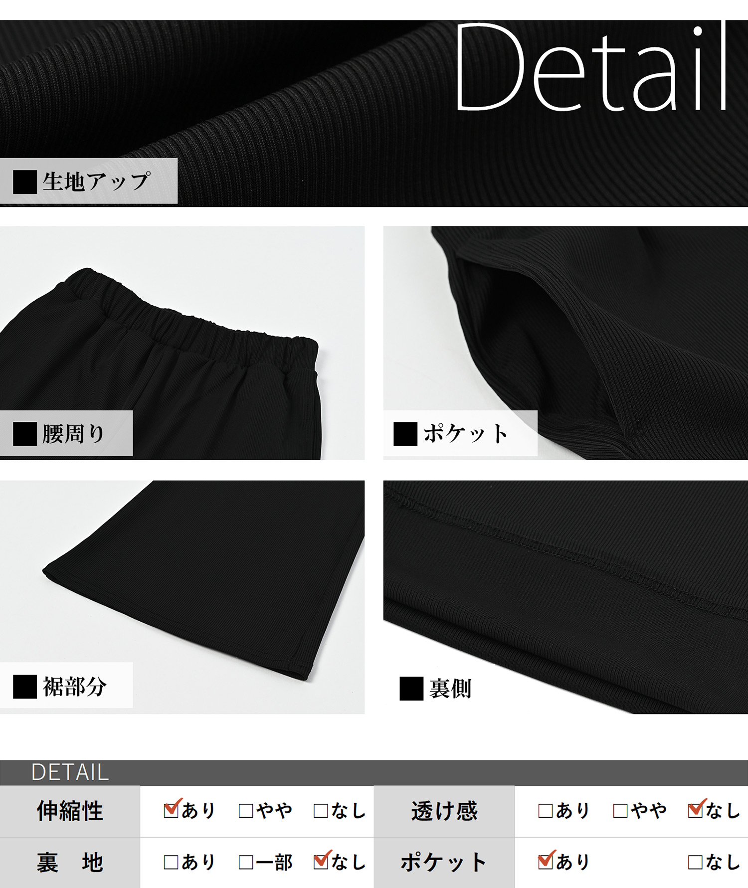 ウエストゴム仕様で