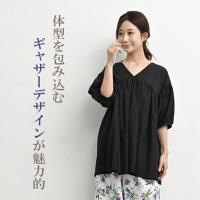 【メール便対応】胸元ギャザーが体型を優しくカバーするVネックチュニック。