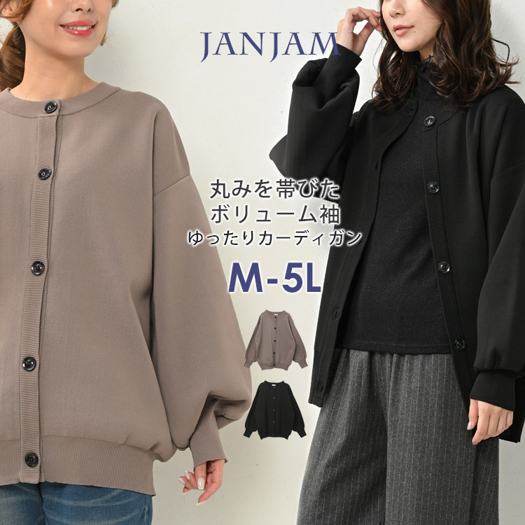 ニットカーディガン 大きいサイズ レディース 長袖 前開きボタン クルーネック ボリューム袖 トップス M LL 3L 4L 5L