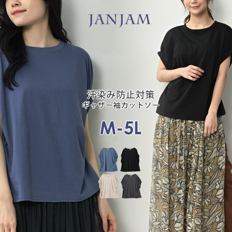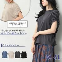 カットソー 大きいサイズ レディース メール便送料350円 ギャザー袖 半袖 スリット 汗染み防止 トップス M LL 3L 4L 5L