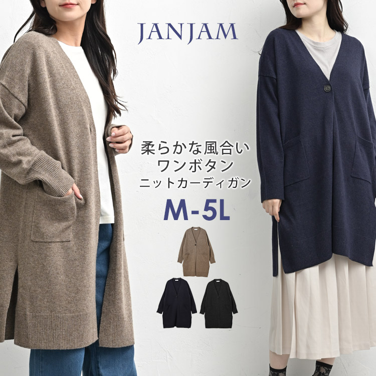 もちっとラムニットカーディガン 大きいサイズ レディース 長袖 ロング丈 ワンボタン 羽織り トップス M LL 3L 4L 5L 送料無料※沖縄/北海道対象外