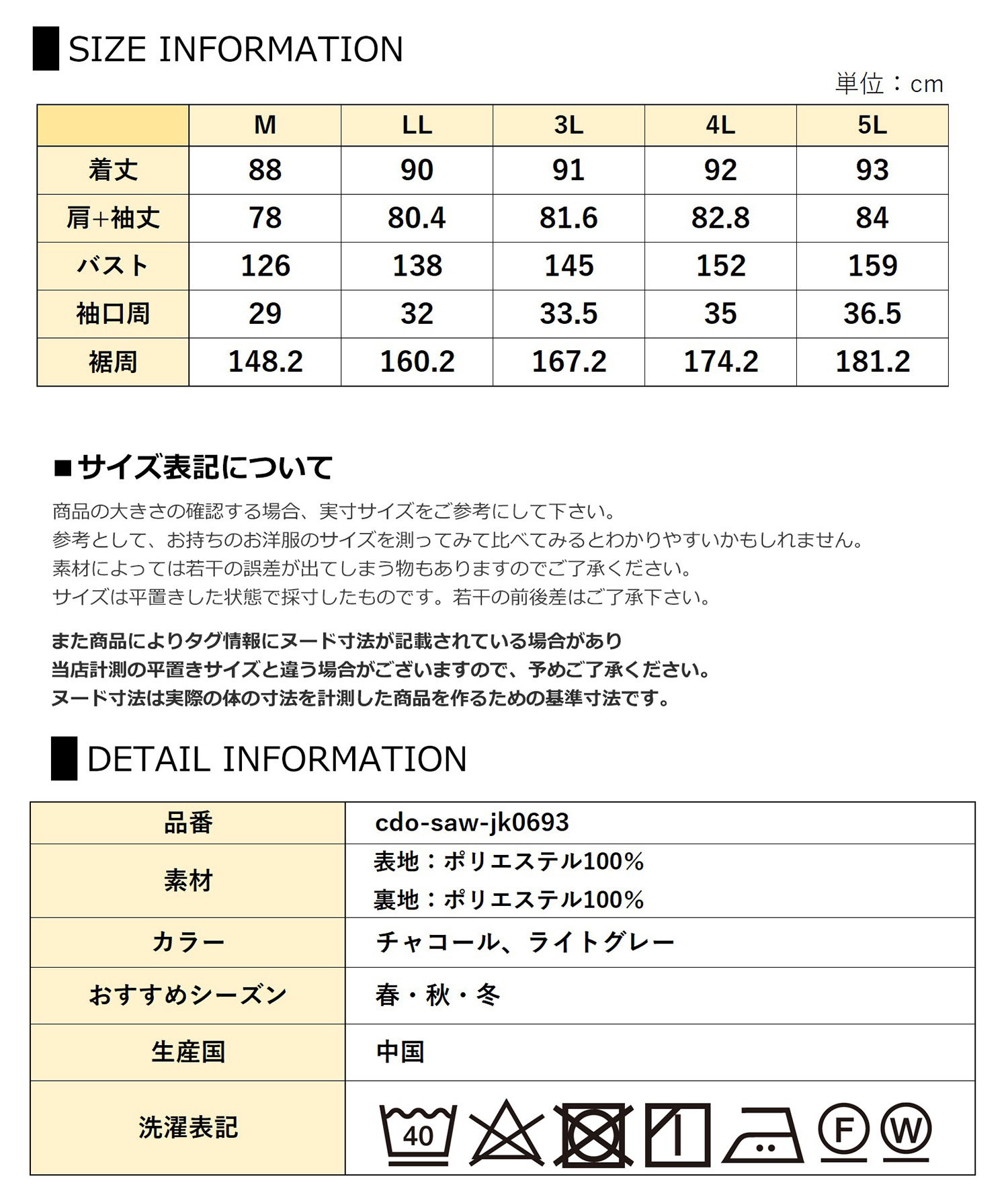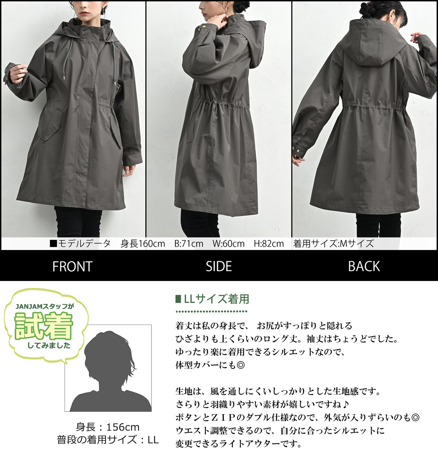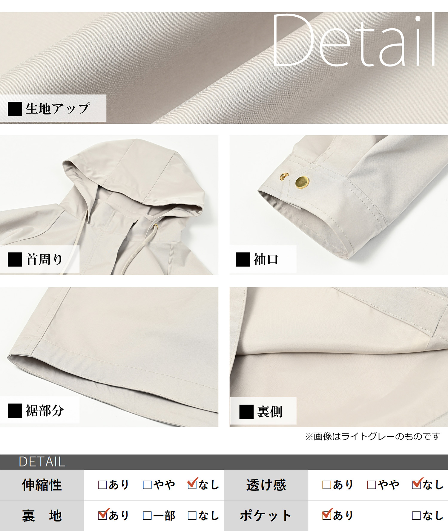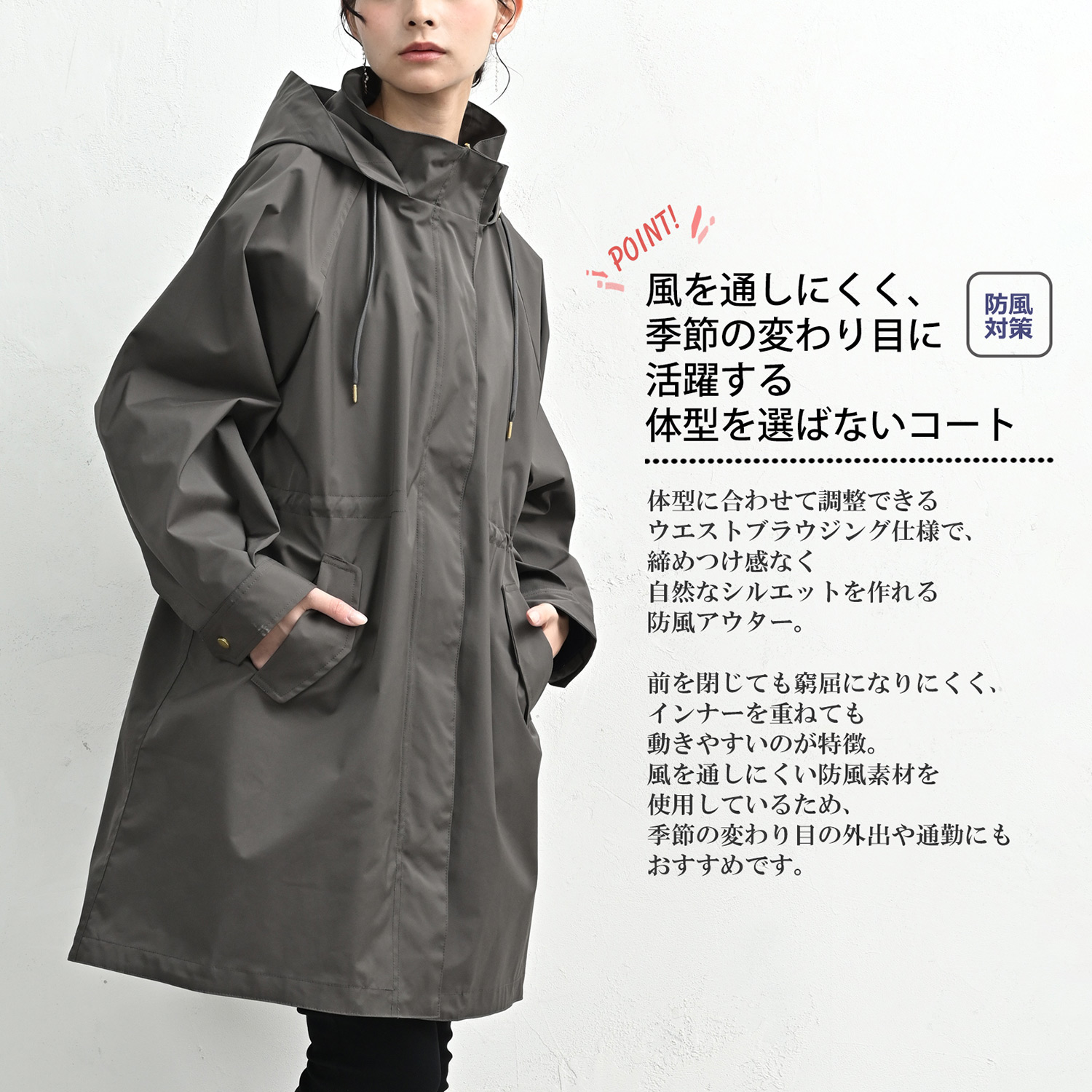 ・防風・防寒・軽量:風を通しにくい素材(ポリエステル)を使用した防風コート。裏地ありでしっかりとした作りながら、軽やかな着心地。春コート・秋コート・冬用コートとして春秋・秋冬のデイリーに最適です。